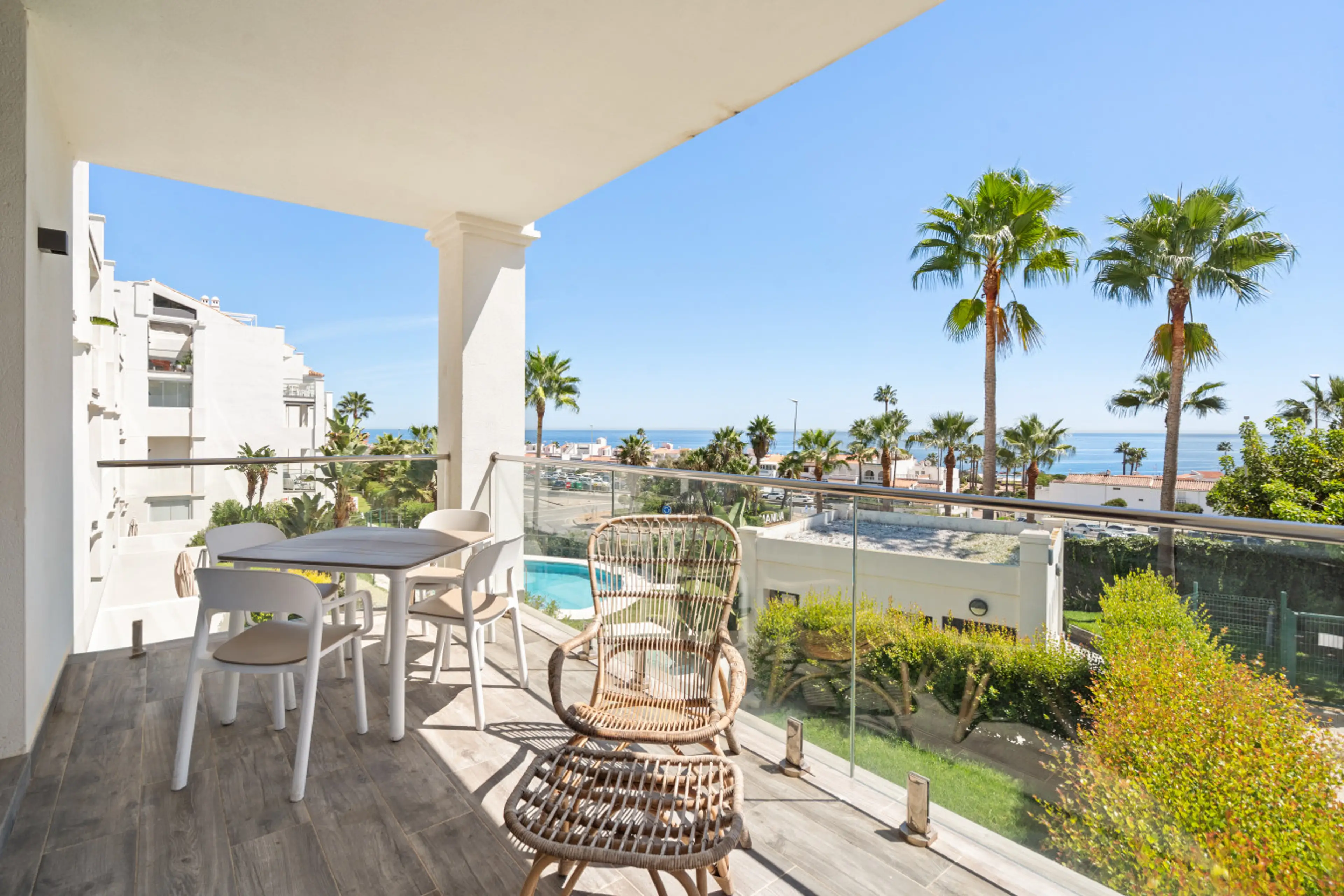 Located in Manilva, this spacious and bright 3 bedroom apartment fits up to 5 guests. Just a couple of minutes from the beach, with an ample exterior terrace and community pools to guarantee a nice and relaxing stay. FEATURES: - The apartment features 3 comfortable bedrooms equipped with air condi...