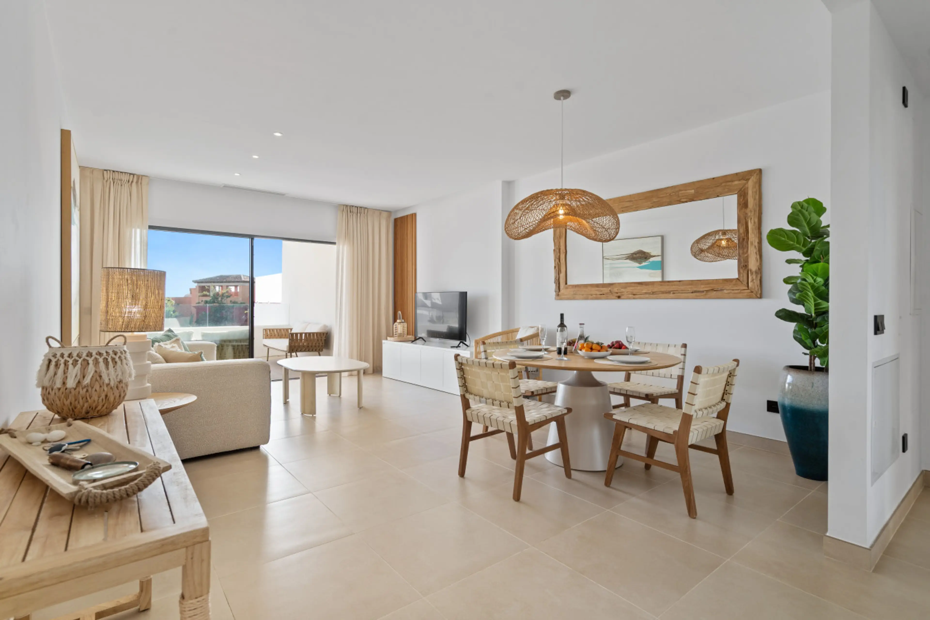 Located in Casares del Sol, this chic and bright 2 bedroom apartment fits up to 4 guests. Just a couple of minutes from the beach and tucked between golf courses, the apartment provides an ample exterior terrace and a community pool to guarantee a nice and relaxing stay. FEATURES: - The apartment ...