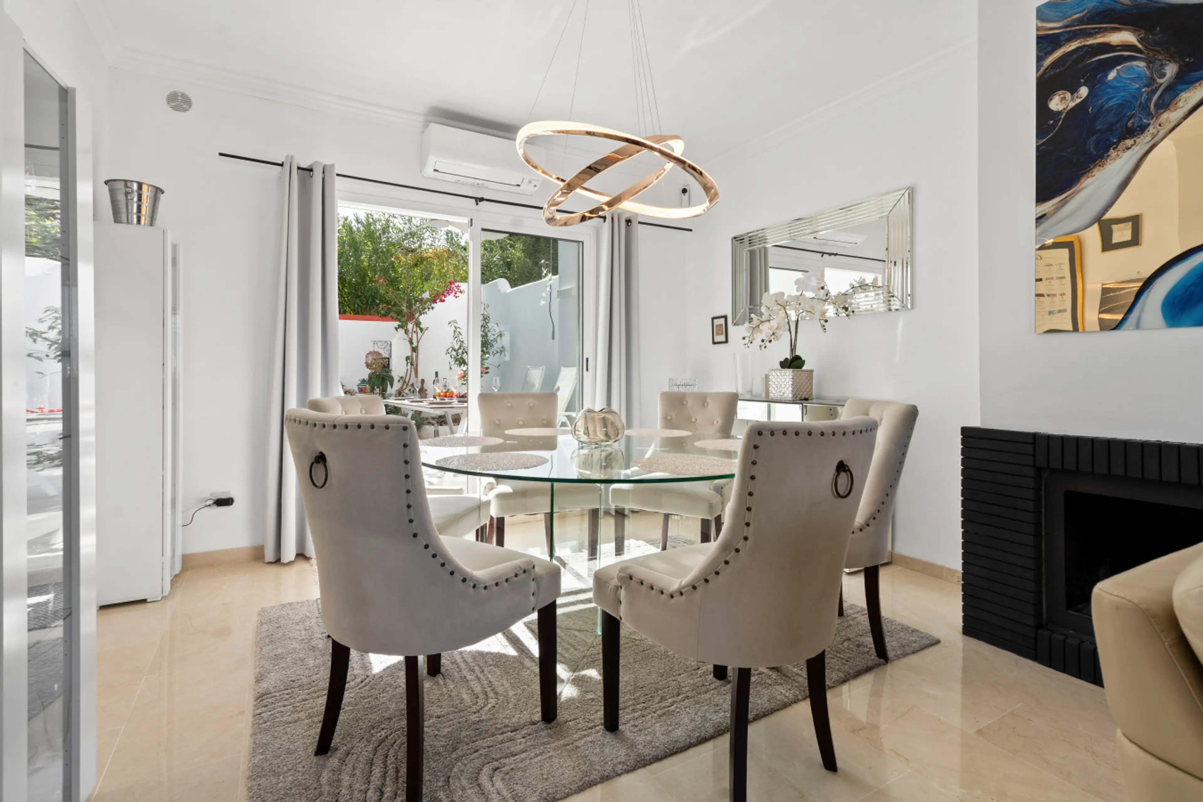 Located in Manilva, this chic and cosy 5 bedroom house fits up to 10 guests. Swimming pool is located nearby - one for the community to share. Just a couple of minutes from the beach and with a spectacular sea view from the rooftop, this 3-story villa provides an ample exterior space to guarantee a ...