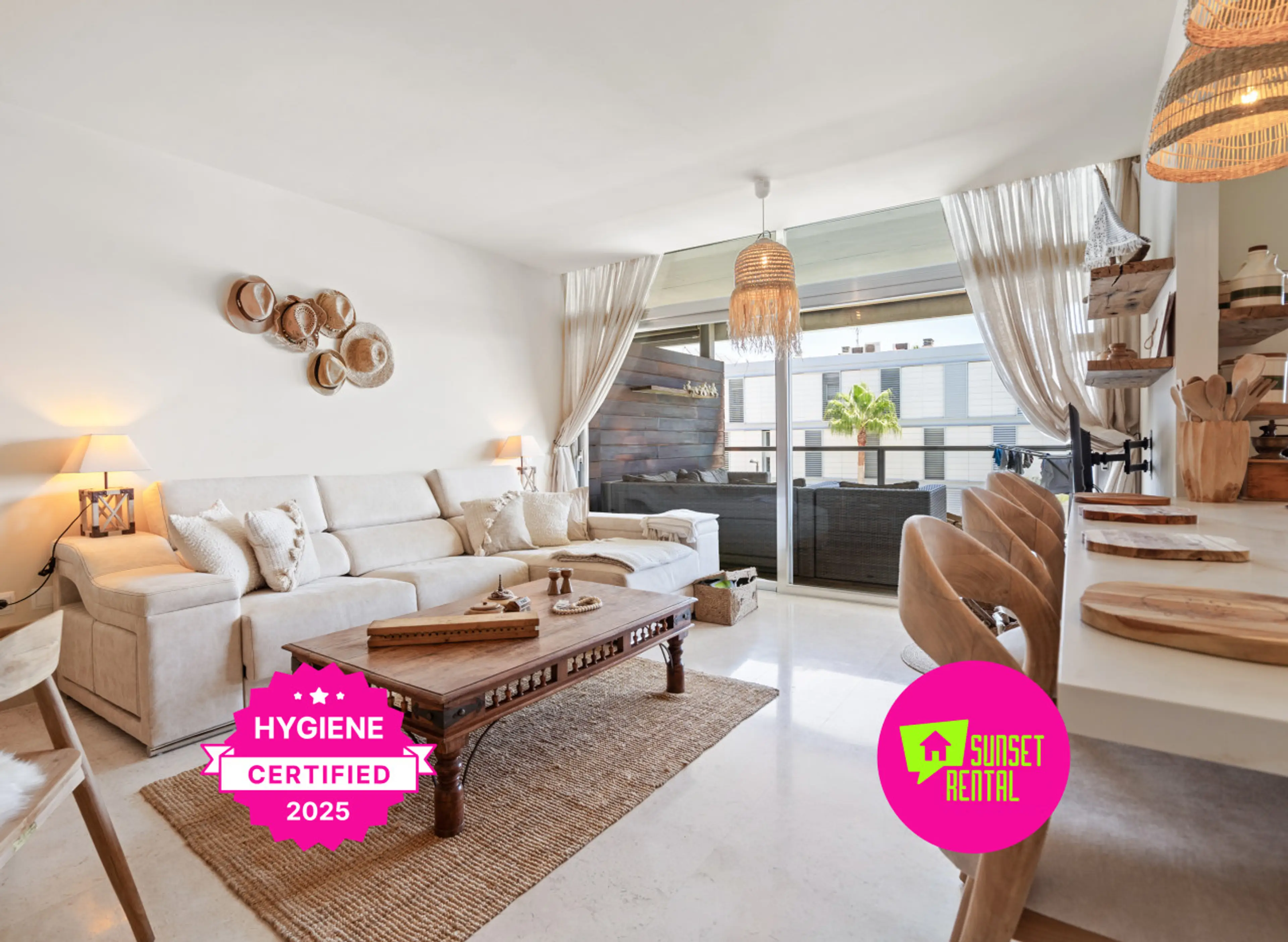 Located in Manilva, this elegant and bright 2 bedroom apartment fits up to 4 guests. Quiet community with one exterior and one interior pool, exterior terrace with pool view and sitting area to guarantee a nice and relaxing stay. FEATURES: - The apartment features 2 comfortable bedrooms designed w...